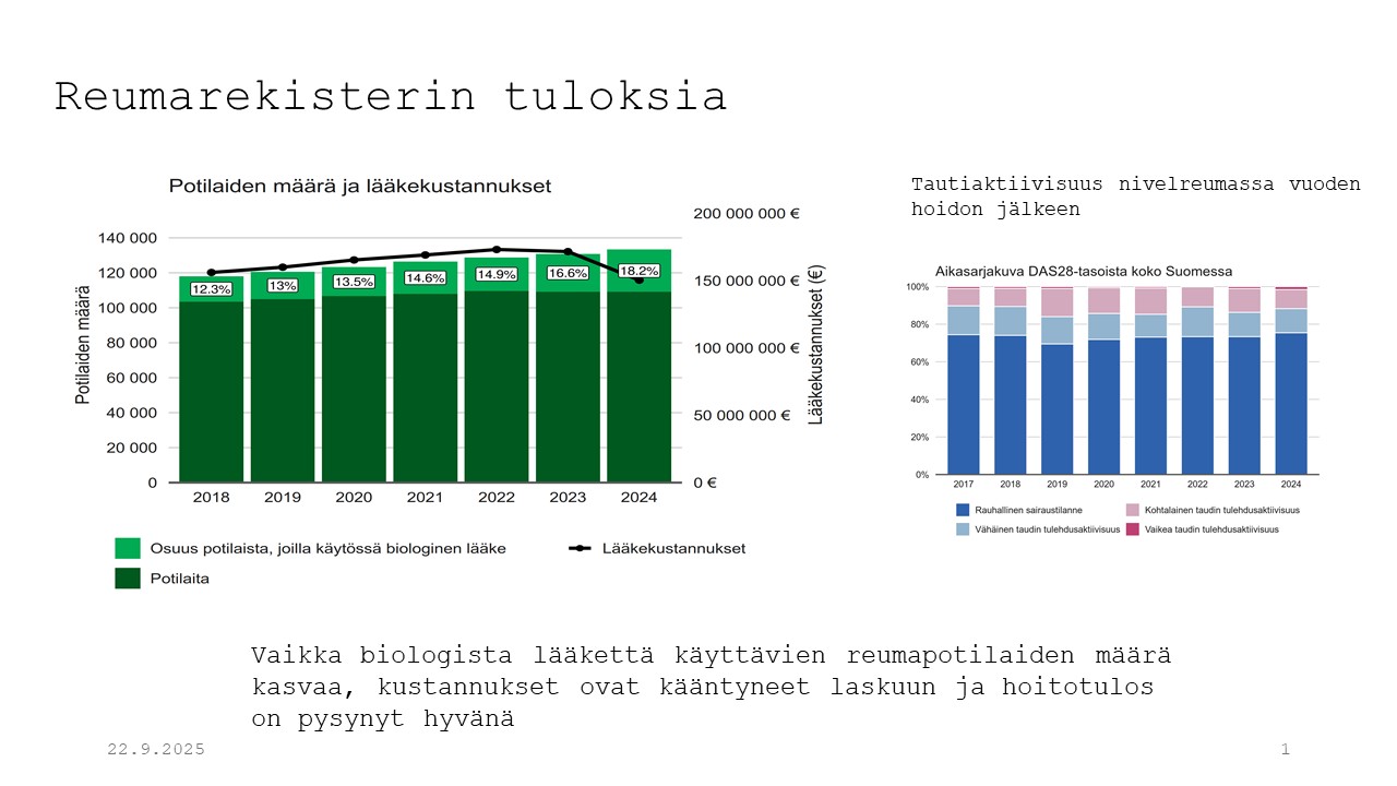 • Reumarekisterin aineistosta koostettuja raportteja voi hyödyntää reumasairauksien hoidon